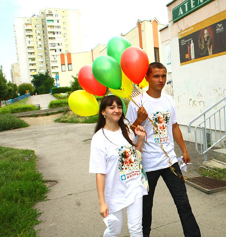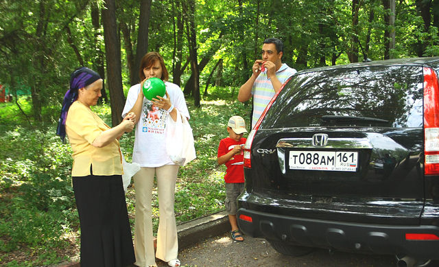 На фото слева: руководитель Центра защиты семьи, материнства и детства «Возрождение» А.С.Савчишина , волонтер фонда Н.Зобова, вице-президент фонда Д.В.Поздняков. С огромным энтузиазмом воздушные шарики с логотипом акции принялись надувать и другие участники автопробега!