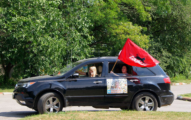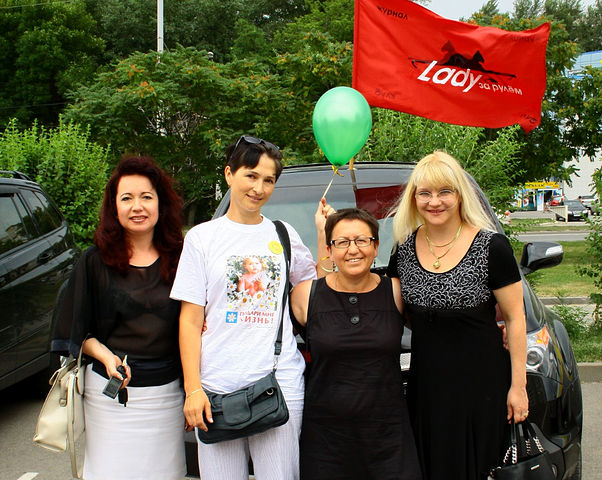 На фото: машину ведет руководитель Клуба «Леди за рулем», алый флаг которого в руках Комиссаровой Светланы Исхаковны , председателя правления нашего фонда. И этот факт доказательство того, что только наш фонд за единение всех людей и позитивных сообществ ради добрых целей!