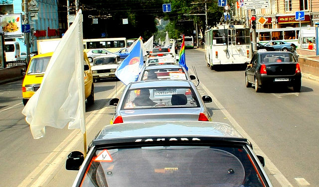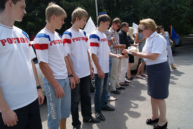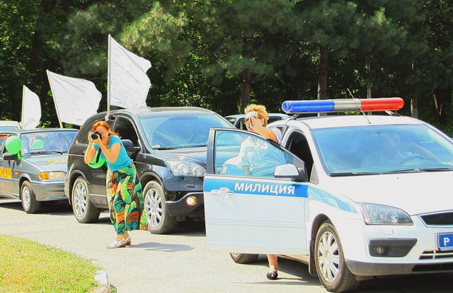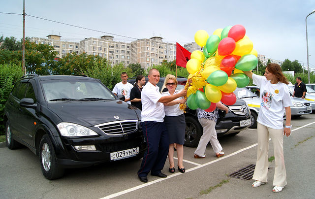 После дачи ценных указаний по безопасности движения в автоколонне, ее ведущая Г.Е.Давыдова, начальник отдела пропаганды Управления ГИБДД ГУВД РФ по Ростовской области, подарила всем участникам автопробега памятные значки в честь 10-летия действий по обеспечению безопасности дорожного движения и дала команду: «По машинам!». После этого колонна двинулась по запланированному маршруту.