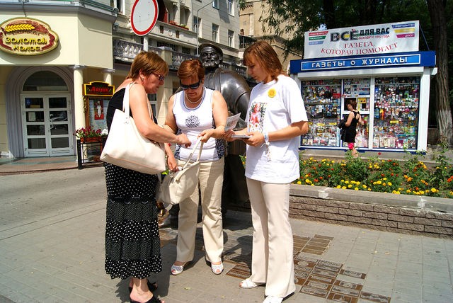 Волонтеры раздавали горожанам информационно-просветительский материал по тематике акции в виде лифлетов, открыток и плакатов, объясняя женщинам, молодым парам значимость акции.