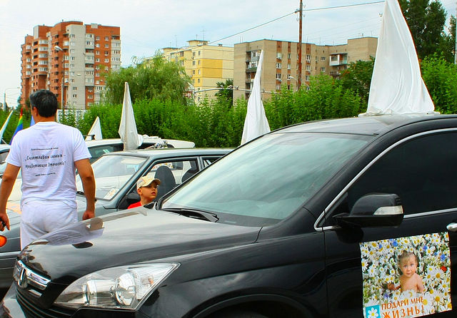 По ходу движения автоколонны к центру города в мегафон беспрерывно озвучивалась тема автопробега. Из окон каждой машины развивались белые флаги как символ чистоты и белых халатов врачей, призванных спасать жизнь, а не губить ее. Ведь по статистике ежедневно в нашей стране совершается 5 тысяч абортов. Результатом хирургического вмешательства становится убийство пяти тысяч младенцев - это почти 22 Беслана в день! Целая армия «врачей» таким образом подтверждает свой статус "защитников" человеческой жизни .
