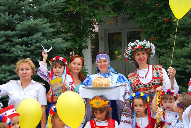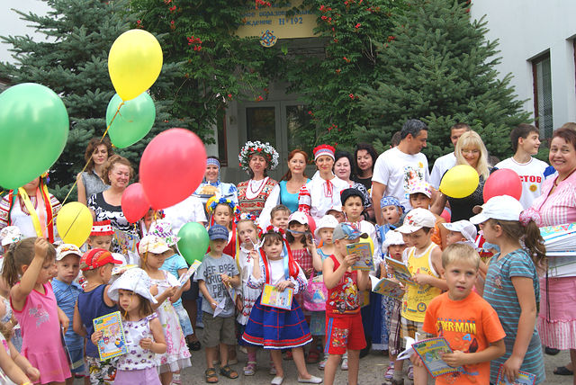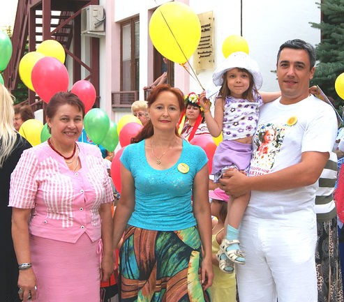 На фото: А.А.Савостина, член правления нашего фонда (директор детского сада «Веселинка», руководитель Центра славянской культуры «Дергана»); И.И.Никишина, президент фонда (член городского координационного совета по проблемам семьи, женщин и детей; Д.В.Поздняков с воспитанницей детсада «Веселинка» (вице-президент фонда).