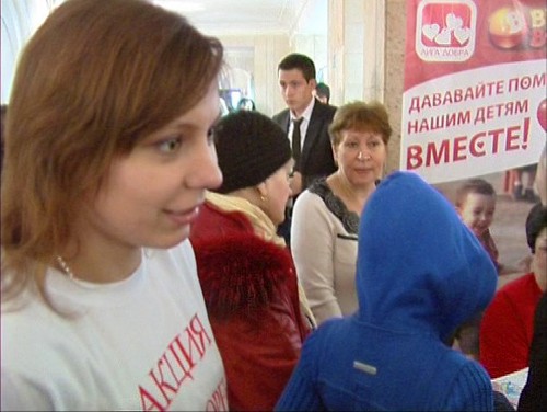 Волонтеры в майках с логотипом акции «Добротворение» раздавали информационные лифлеты с художественной программой концерта, справочным материалом о благополучателях - больных детях и партнерах акции.