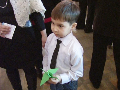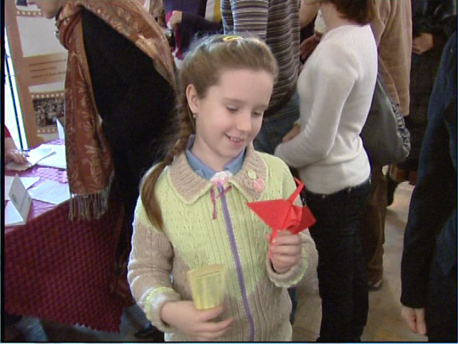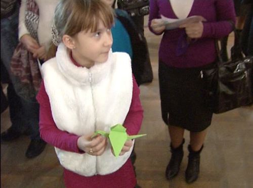 Будущим мамам и детям волонтеры дарили разноцветных бумажных журавликов (оригами).