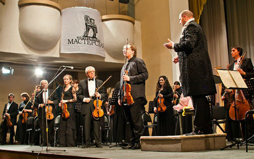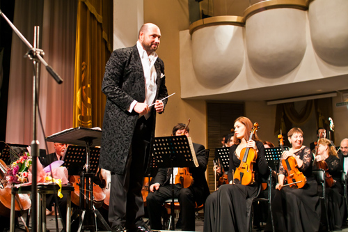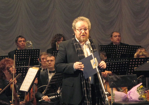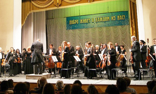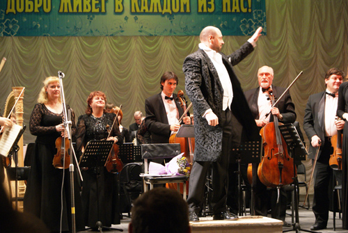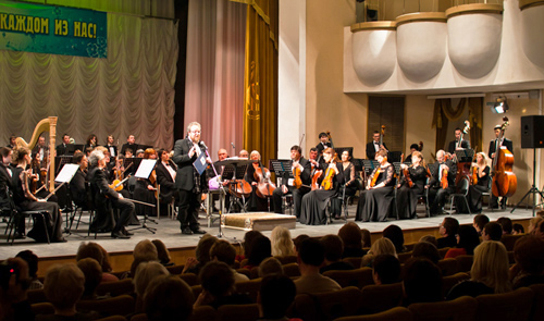 На фото: Дирижер Эдуард Дядюра и ростовский академический симфонический оркестр.