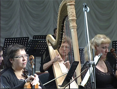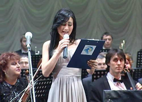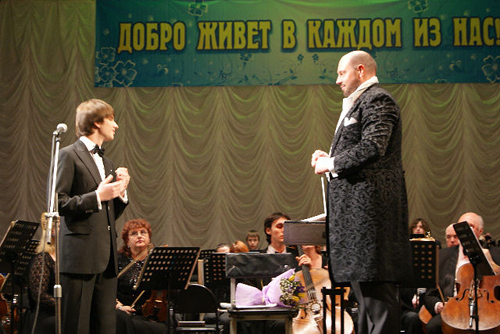 Лариса представила зрителям знаменитых гостей из Москвы: ведущего концерта Артема Варгафтика и дирижера симфонического оркестра Эдуарда Дядюру. Встретили их радушными зрительскими аплодисментами и цветами.