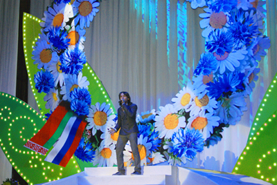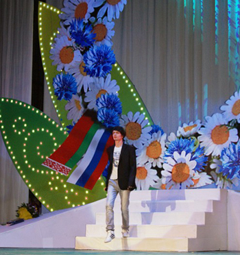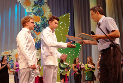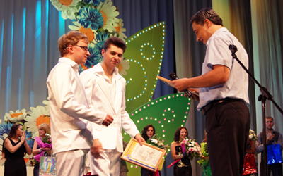 На фото: Ильясу вручается Диплом участника конкурса исполнителей молодежной песни.