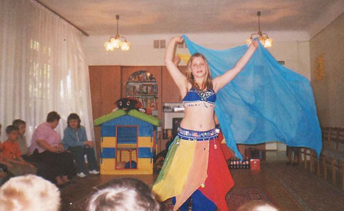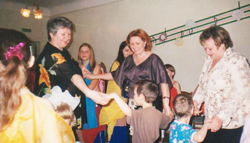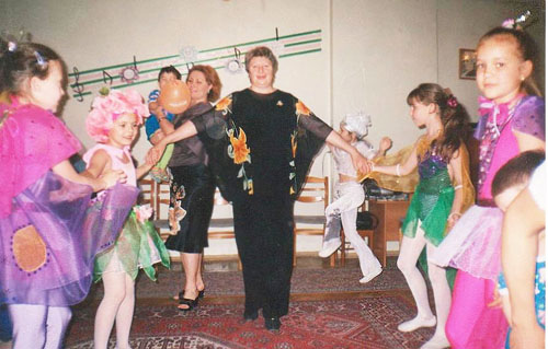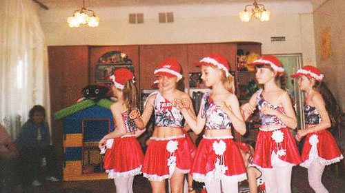 А девочки, после завершения концертной программы, примерив костюмы участниц ансамбля «Овация», охотно разучивали танцевальные движения под руководством хореографа И.Ивановой.