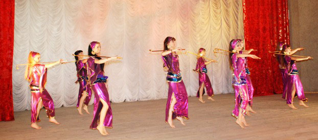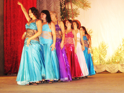 И далее по программе был исполнен танец, который так и назывался: «Девы Песка». Очень сложным, но в то же время интересным является арабский танец «Халиджи». В нём используется много разнообразных движений волосами, вращений головой. Поэтому девушка, исполнившая этот танец, имела длинные красивые волосы, которые очень эффектно акцентировали оригинальность «Халиджи». Танец «Александрия» исполнили танцовщицы в коротеньких платьях, держа в руках тяжёлые расшитые монистами платки – мелайи. Перед просмотром этого танца, ребята прослушали информацию об Александрии: второй по величине город Египта, имеет скорее средиземноморские, чем восточные черты. Дух и культура города отличны от остальной страны, хотя он и находится всего лишь в 225 км от Каира. Город, основанный в 332 г. до н.э. Александром Македонским, в греко-римский период истории Египта был столицей страны и крупным торговым и культурным центром, средоточием духовной жизни эллинского мира... Страбон, Евклид, другие ученые и философы черпали здесь вдохновение для своих трудов. Клеопатра, последняя царица из династии Птолемеев, околдовала здесь своей красотой Цезаря, а затем его преемника...