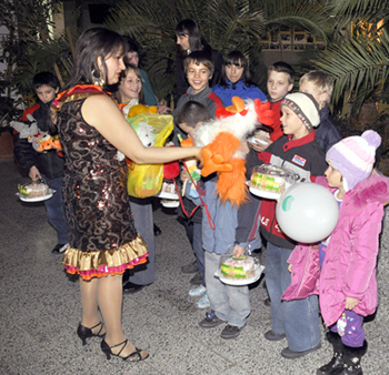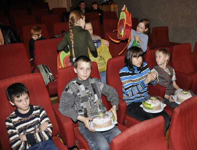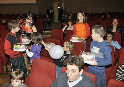 Чтобы впечатления от выступления своих сверстников и взрослых артистов дети могли обсудить за чаепитием, каждого из них тоже угостили тортами.