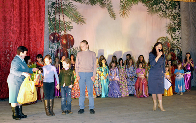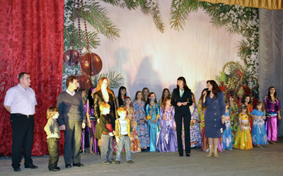 Мероприятие прошло в рамках концерта коллектива студии искусств « Альтаир», руководитель которой Ирина Тальянцева – член общественного актива нашего фонда. На фото: И.Тальянцева в центре сцены.