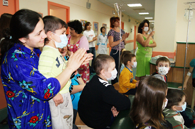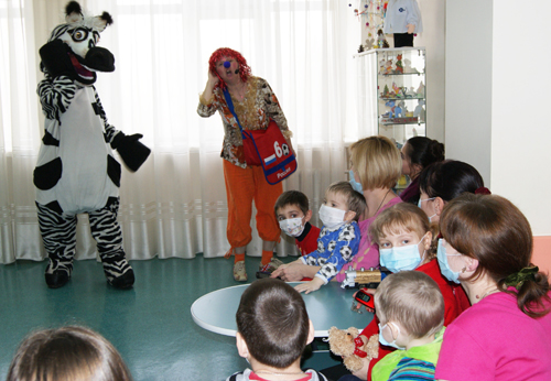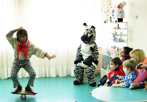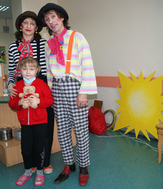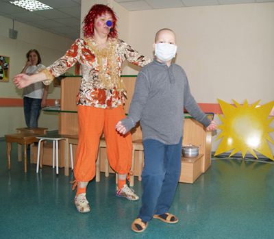 По словам Натальи Владимировны, очень важным и эффективным средством эмоциональной поддержки онкобольных детей являются встречи с клоуном. Игровая деятельность, шутки, смех, помогают облегчить как физическое, так и моральное состояние маленьких пациентов. Клоунотерапия – уникальный проект благотворительности известный в Европе уже более 25 лет. У нас в стране оно пока широко используется в детских больницах Москвы и Санкт-Петербурга.