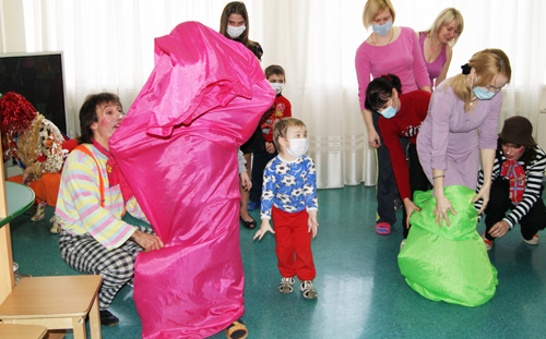 Во время праздников смехотерапии «Выздоравливай поскорее!» мы тоже стараемся накапливать опыт клоунотерапии.