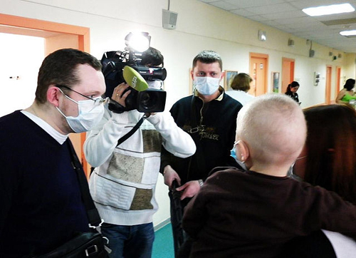 Для привлечения внимания к проблемам семей с онкобольными детьми мы пригласили в больницу корреспондентов телекомпаний НТВ и ТВЦ.