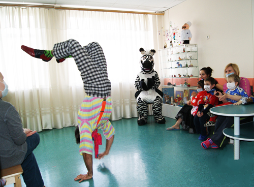 Наш фонд 15 февраля ежегодно проводит Праздник Смехотерапии «Выздоравливай поскорее!» для детей-пациентов онкогематологического центра областной детской больницы (ОДБ). Обычно, это мероприятие проходит в большом актовом зале ОДБ с участием и артистов цирка, и детских хореографических коллективов.