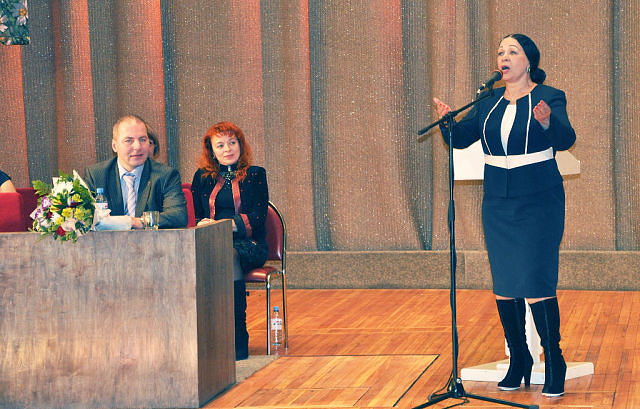 Затем делегаты могли посмотреть праздничный концерт, посвящённый Дню матери. Концерт открыла член общественного актива нашего фонда Лариса Яковенко песней «Гимн Разуму» ( идеологический гимн фонда).