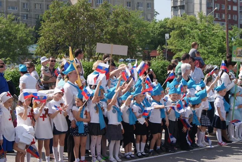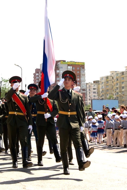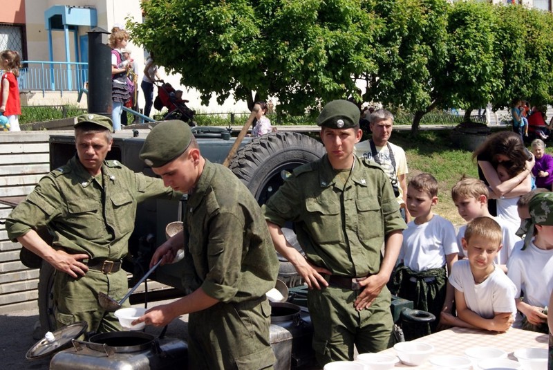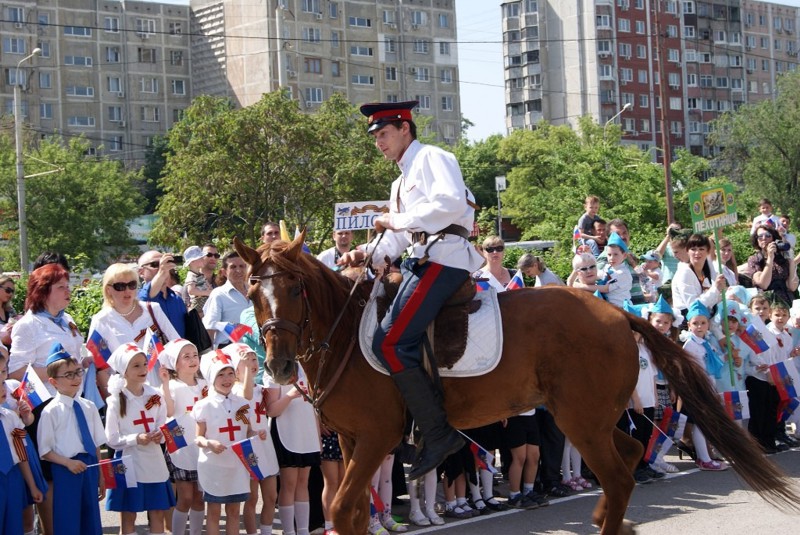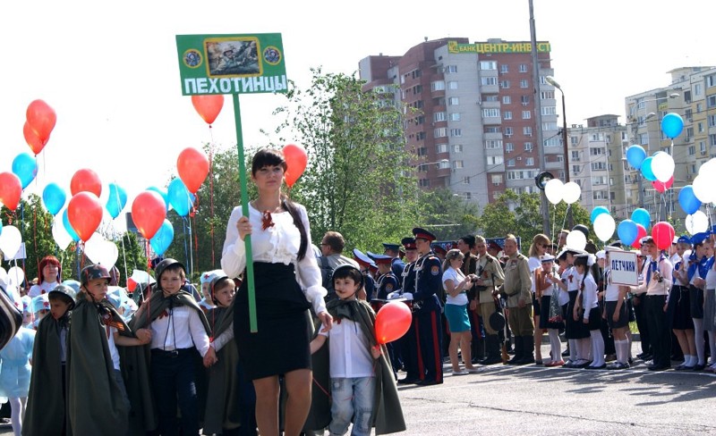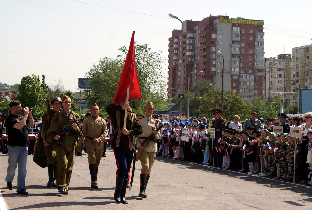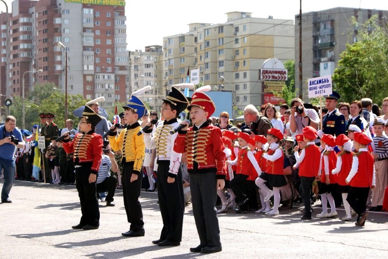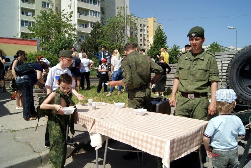 В оргкомитете: Советник Мэра г. Ростова-на-Дону Леучев Николай Константинович (генерал-майор запаса); руководство штаба ЮВО; п/п-к Игорь Фёдоров, заместитель командира по работе с личным составом 175 бригады ( командующий парадом); администрация Гарнизонного Дома офицеров; РОБФ "Счастливая семья – процветающее Отечество»... В этом году «Парад детских войск», посвященный 69 годовщине Великой Победы, прошёл 16 мая 2014 г. Полтысячи детсадовцев и школьников почувствовали себя настоящими солдатами. Площадка перед гарнизонным Домом офицеров на «Болгарстрое» напоминала Театральную площадь в День Победы. Парадные ряды представляли действующие офицеры и родители малышей. Звуковое сопровождение парада осуществлялось силами 15 Военного оркестра ЮВО, художественный руководитель подполковник Головин А.Б., заслуженный артист РФ. Традиционно почётные гости этого события - Ветераны ВОВ. Им были вручены подарки и памятные благодарственные письма от фонда «Счастливая семья - процветающее Отечество». Парад в честь Дня Победы начался выносом знамени ротой почетного караула. Затем военнослужащими батальона спецназа Ларисой Яковенко и Ирины Ведианцевой была исполнена песня «Гимн разуму» ( идеологический гимн нашего фонда) В показательных выступлениях свое мастерство продемонстрировали юные барабанщики Аксайского Данилы Ефремова казачьего кадетского корпуса; конница с донскими казаками в сопровождении легендарных «Трёх богатырей». А исторический клуб выступил с реконструкцией фрагментов Великой Отечественной войны. В ходе мероприятия заместитель главы администрации Октябрьского р-на г.Ростова-на-Дону по социальным вопросам Фоменко Татьяна Викторовна вручила поощрительные грамоты членам оргкомитета парада, а сотрудник городской администрации Леучев Николай Константинович от имени Мэра города Ростова-на-Дону вручили Благодарственные письма нашему фонду в лице президента И.Никишиной и оркестру ЮВО в лице художественного руководителя А.Головина. По завершении парадного марша солист ансамбля песни и танца ЮВО исполнил песню «День Победы». А затем все могли подкрепиться солдатской кашей и чаем, приготовленными полевой кухней. Парад удался! И зрители, и участники остались довольны! Автор фоторепортажа - волонтёр нашего фонда Наталия Зобова (на последнем фото).