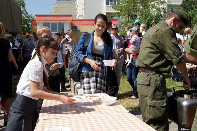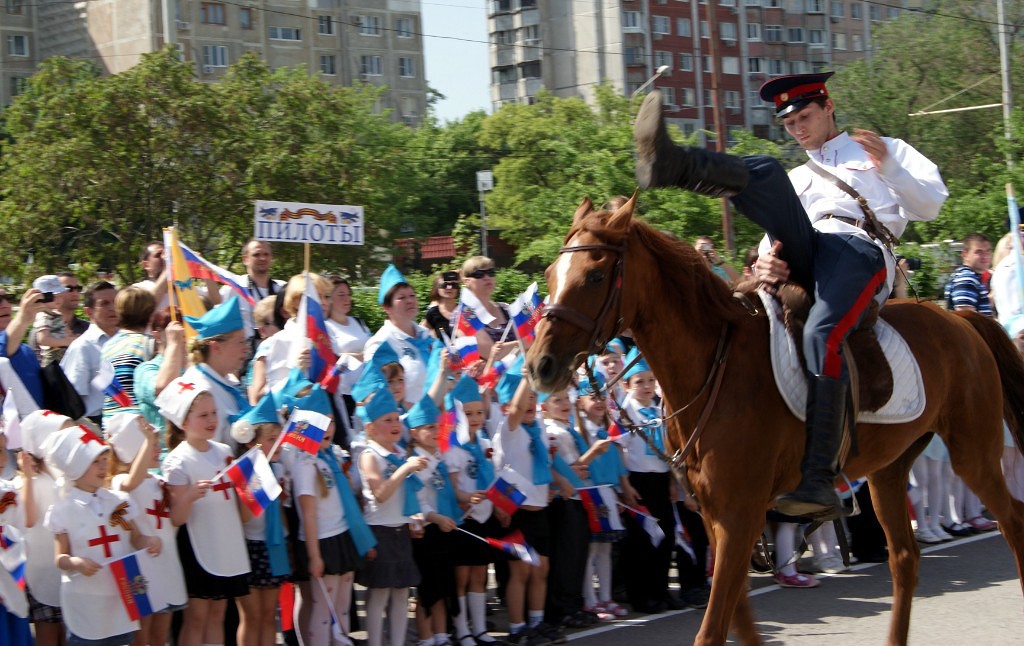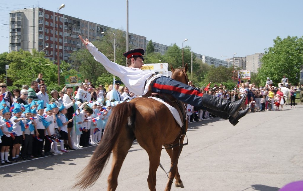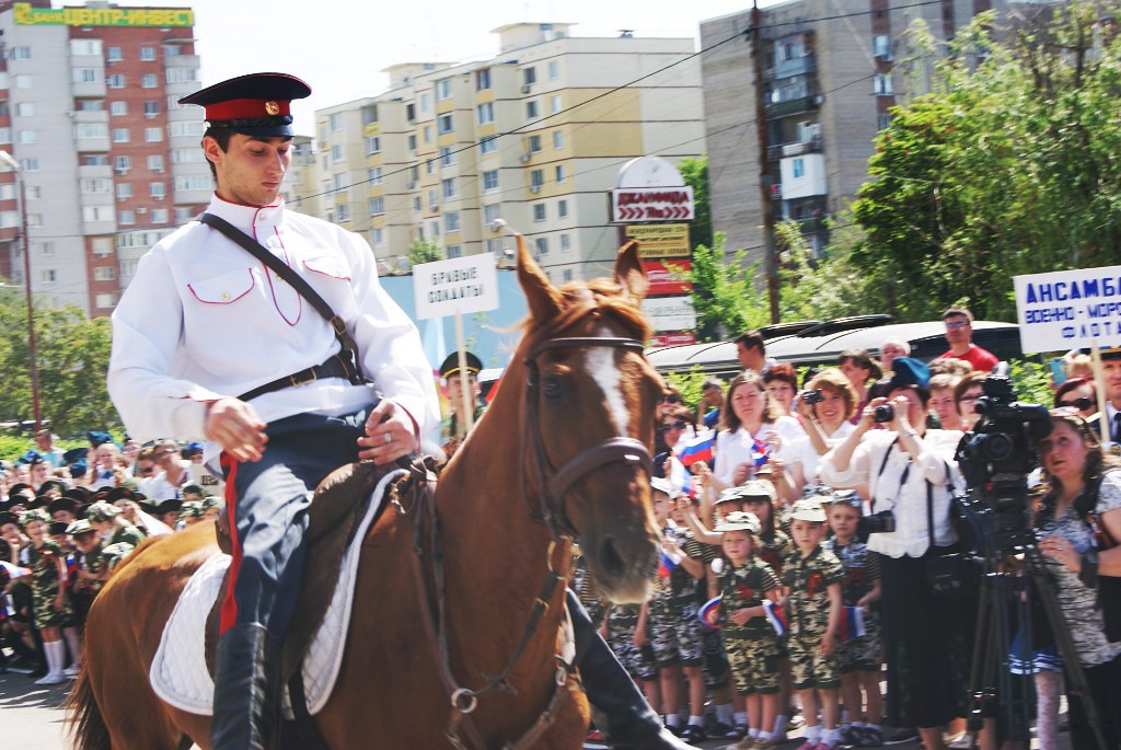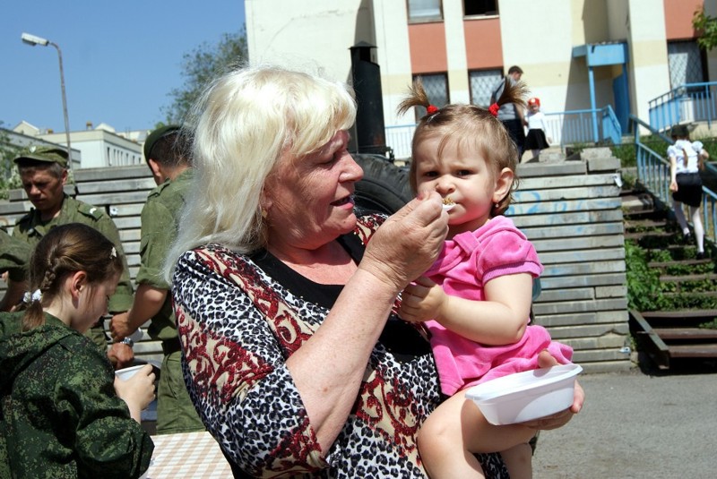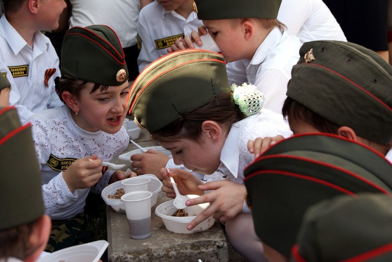 В оргкомитете: Советник Мэра г. Ростова-на-Дону Леучев Николай Константинович (генерал-майор запаса); руководство штаба ЮВО; п/п-к Игорь Фёдоров, заместитель командира по работе с личным составом 175 бригады ( командующий парадом); администрация Гарнизонного Дома офицеров; РОБФ "Счастливая семья – процветающее Отечество»... В этом году «Парад детских войск», посвященный 69 годовщине Великой Победы, прошёл 16 мая 2014 г. Полтысячи детсадовцев и школьников почувствовали себя настоящими солдатами. Площадка перед гарнизонным Домом офицеров на «Болгарстрое» напоминала Театральную площадь в День Победы. Парадные ряды представляли действующие офицеры и родители малышей. Звуковое сопровождение парада осуществлялось силами 15 Военного оркестра ЮВО, художественный руководитель подполковник Головин А.Б., заслуженный артист РФ. Традиционно почётные гости этого события - Ветераны ВОВ. Им были вручены подарки и памятные благодарственные письма от фонда «Счастливая семья - процветающее Отечество». Парад в честь Дня Победы начался выносом знамени ротой почетного караула. Затем военнослужащими батальона спецназа Ларисой Яковенко и Ирины Ведианцевой была исполнена песня «Гимн разуму» ( идеологический гимн нашего фонда) В показательных выступлениях свое мастерство продемонстрировали юные барабанщики Аксайского Данилы Ефремова казачьего кадетского корпуса; конница с донскими казаками в сопровождении легендарных «Трёх богатырей». А исторический клуб выступил с реконструкцией фрагментов Великой Отечественной войны. В ходе мероприятия заместитель главы администрации Октябрьского р-на г.Ростова-на-Дону по социальным вопросам Фоменко Татьяна Викторовна вручила поощрительные грамоты членам оргкомитета парада, а сотрудник городской администрации Леучев Николай Константинович от имени Мэра города Ростова-на-Дону вручили Благодарственные письма нашему фонду в лице президента И.Никишиной и оркестру ЮВО в лице художественного руководителя А.Головина. По завершении парадного марша солист ансамбля песни и танца ЮВО исполнил песню «День Победы». А затем все могли подкрепиться солдатской кашей и чаем, приготовленными полевой кухней. Парад удался! И зрители, и участники остались довольны! Автор фоторепортажа - волонтёр нашего фонда Наталия Зобова (на последнем фото).
