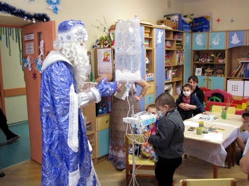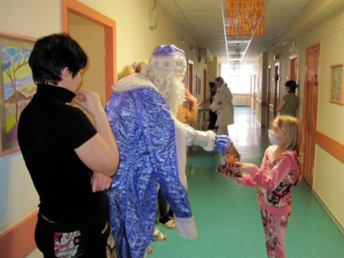 На собранные средства фонд приобрел новогодние подарки для каждого ребенка, а так же организовал встречу для маленьких пациентов с Дедом Морозом. Новогодний праздник "Выздоравливай, поскорее!" прошел так интересно и весело, что ребята на время забыли о своих проблемах. Каждому ребенку было уделено персональное внимание, а игры и конкурсы не оставили равнодушными никого. Даже взрослые из числа сотрудников отделения не могли скрыть своих улыбок.