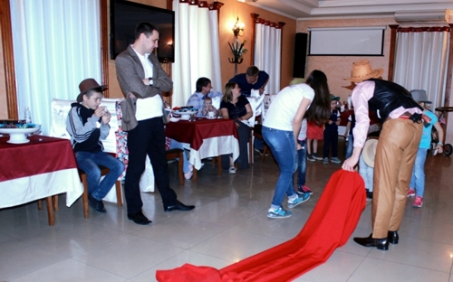 Маленькое торжество прошло в ресторане гостиницы «Старый Ростов». Детям и их родителям был предложен сладкий стол. Кроме этого детишек развлекали аниматоры с помощью разнообразных игр и конкурсов.