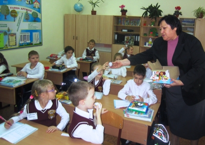 Учащимся 1-х классов, подготовившим флешмоб, по окончании праздника были вручены сюрпризы от фонда.